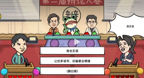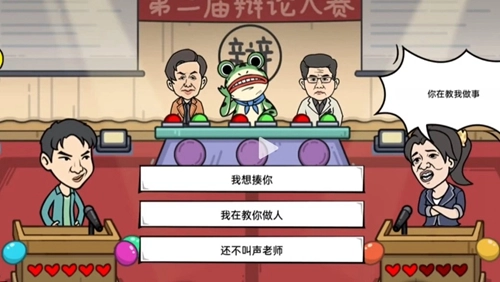 1、玩家进入关卡后,需根据关卡内容选择合适的话语回怼对方,且必须成功怼赢对方。