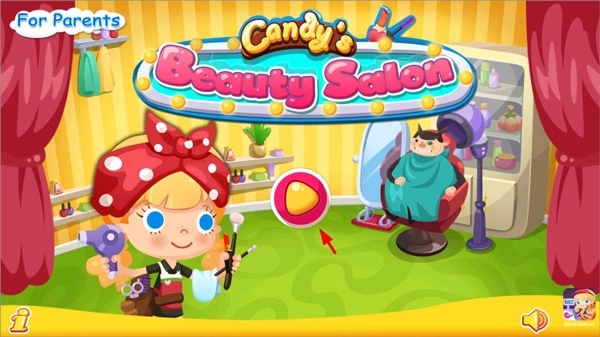 糖糖美容院(Candy's Beauty Salon)是成都力比科技有限公司开发的一款面向儿童的美容院模拟经营类游戏。游戏以虚拟角色糖糖作为主角,整体采用清新可爱的卡通风格,操作界面设计得简洁明了,玩家能够按照提示图标进行点击,一步步完成整个服务流程。