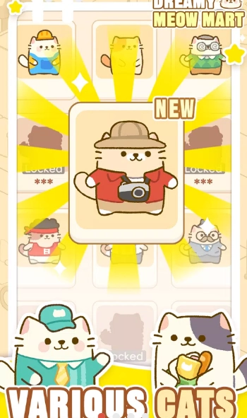 2、各种各样可爱的猫咪,玩家能够雇佣不同品种、拥有独特技能与特点的猫咪,来协助经营超市。