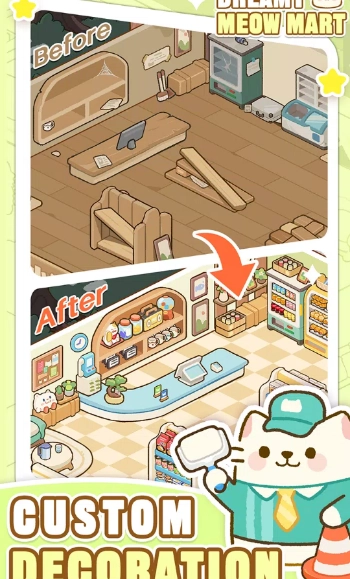 3、玩家能够和猫咪、顾客展开趣味互动,提升超市的活力,让顾客拥有更优质的购物体验。