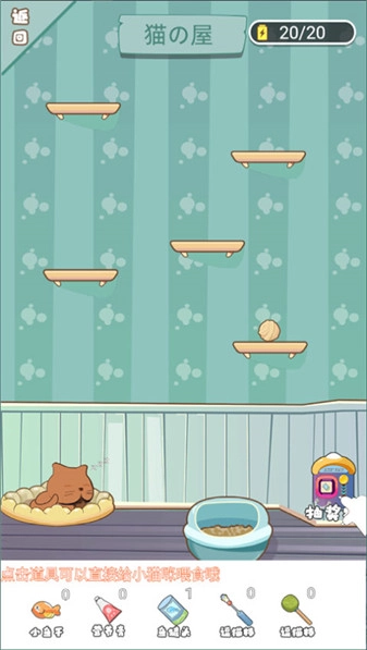 5、另外还有“猫的小窝”玩法哦,在这里你可以和小猫咪互动,比如喂食来增加它的体力值等等。