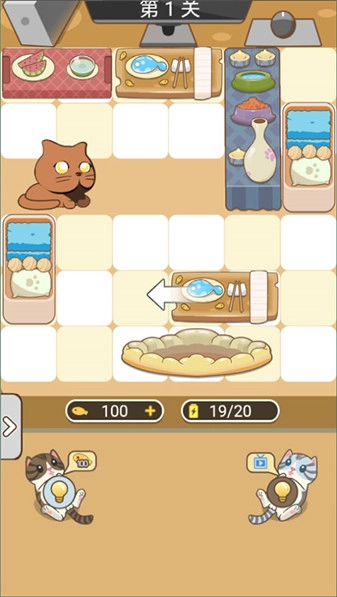 3、这是超简单的华容道玩法,玩家需要观察障碍物的长度与方向,通过移动障碍物来帮助可爱的小猫咪成功脱险。