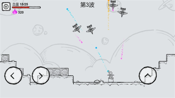 2、不管何时何地都能并肩射击,变身为魔法师,把这些飞行的飞机打下来就能获得升级。