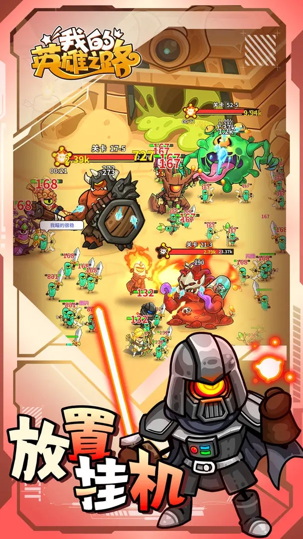 《我的英雄之路》是一款休闲放置游戏,你将化身为星球指挥官,通过升级工厂、强化细胞战士、召唤强大的英雄以及解锁特殊技能,来保卫自己的家园,抵御外星入侵者的侵袭。游戏拥有丰富的玩法和策略元素,让你在激烈的战斗中体验到无限的乐趣。现在就加入战斗吧,带领你的细胞战士们走向胜利,夺回属于你的星球!