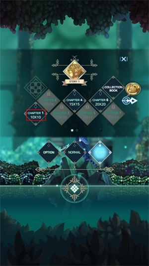 1、玩家完成新手引导后,会跟随小女孩进入关卡,之后点击问号就能选择关卡。