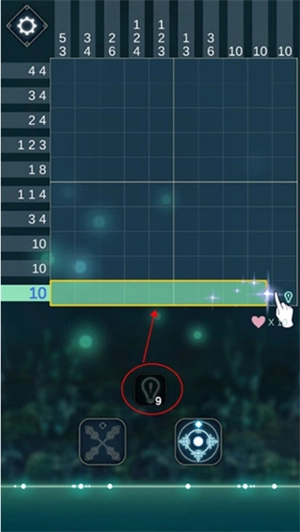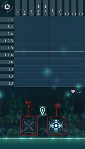 4、玩家需在下方选择按钮,左侧的x是标记按钮,用于标记无需点亮的位置,右侧则是点亮按钮。