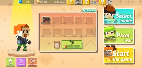 3、从手枪到步枪,从冲锋枪到狙击枪,再到各类千奇百怪的特色武器,《和平荣耀像素射击》的武器库十分丰富,足以满足你对射击的所有想象。