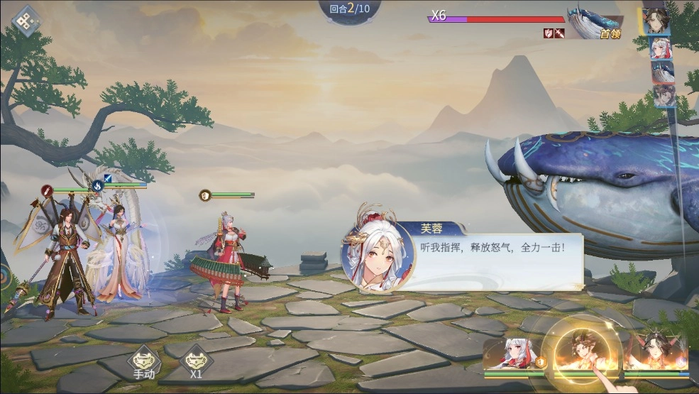 3、当我方阵容处于战斗状态时,按照指引释放怒气技能,发动全力一击。