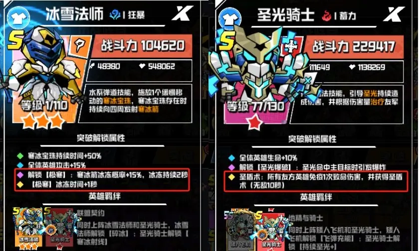 次核心英雄(必上阵):冰法师+圣光骑士
