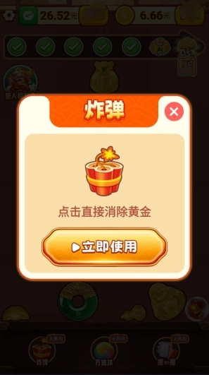 5、另外有三个道具能辅助你进行合成,其中炸弹能够消除黄金。