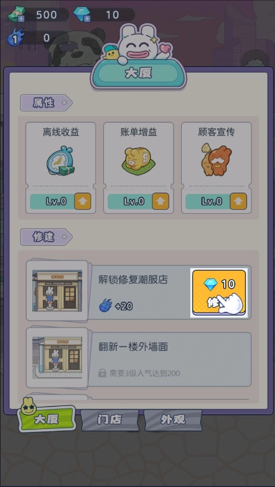 从修补第一片砖瓦起步,你能够按照自己的偏好来定制大厦的每一处细节,无论是内部装修的风格,还是外部景观的主题。在这里,你会经营好几家不同的店铺,吸引动物世界里各种各样的顾客,解锁各类时尚的商品,收集会舞动的拼图,让大厦重新焕发生机,并且打造成一个独一无二的潮流街区!