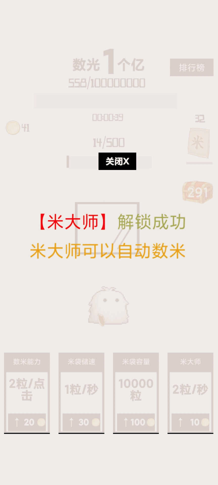 《数光一个亿》是一款休闲解压小游戏,玩家在游戏中的核心玩法是数米粒——只需轻松点击屏幕就能操作,面对海量米粒,玩家通过数数来打发闲暇时光、释放压力,还能沉浸于多样挑战中,积极闯关,完成数数任务后更有奖励可拿。感兴趣的小伙伴不妨来试试!