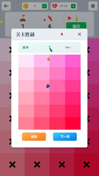 2、关卡的难度会逐步增加,玩家需要全面考量色彩的分布情况、移动所需的步骤以及操作的先后顺序等要素。