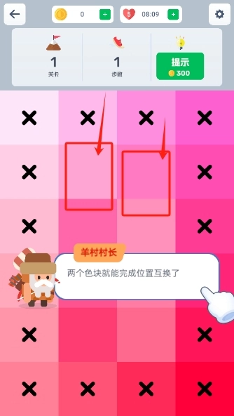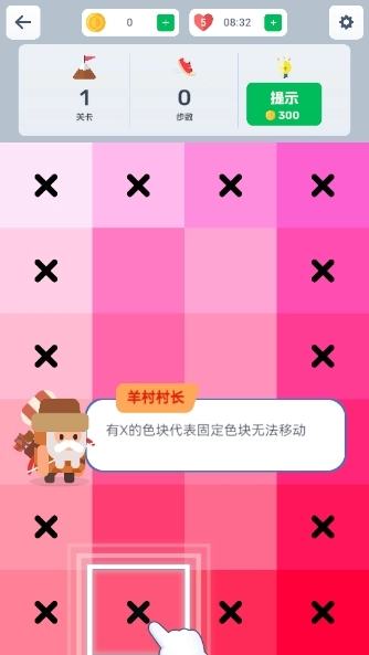 3、有x的色块代表固定色块无法移动。