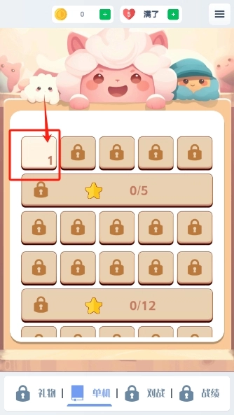 1、进入,点击开启第一关。