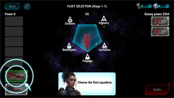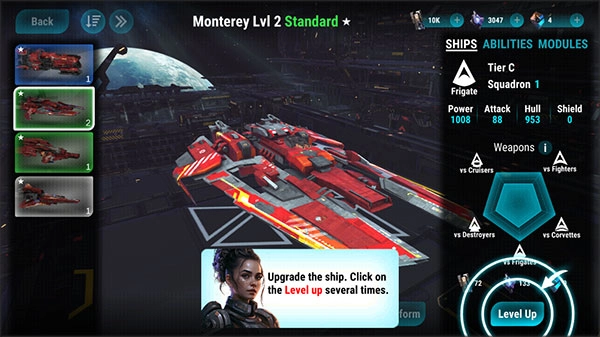 在战斗过程中,你可以点击飞船图标来切换不同的舰型,点击右侧的攻击图标即可发动火力打击。