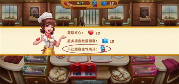 3、爱心:收集顾客的爱心。要在顾客心情值降到爱心以下之前,完成顾客的所有需求。