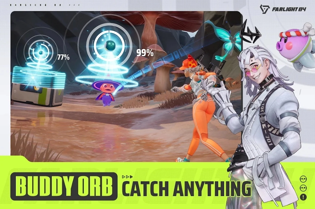 在大逃杀里还能捕捉宠物?那必须的!在《Farlight84》这款游戏中,你可以化身身怀独特技能的英雄,凭借智慧压制对手,还能释放特殊能力打得敌人猝不及防……除此之外,你也能收集那些软萌的小家伙,让它们以忠诚伙伴的身份陪你并肩作战。