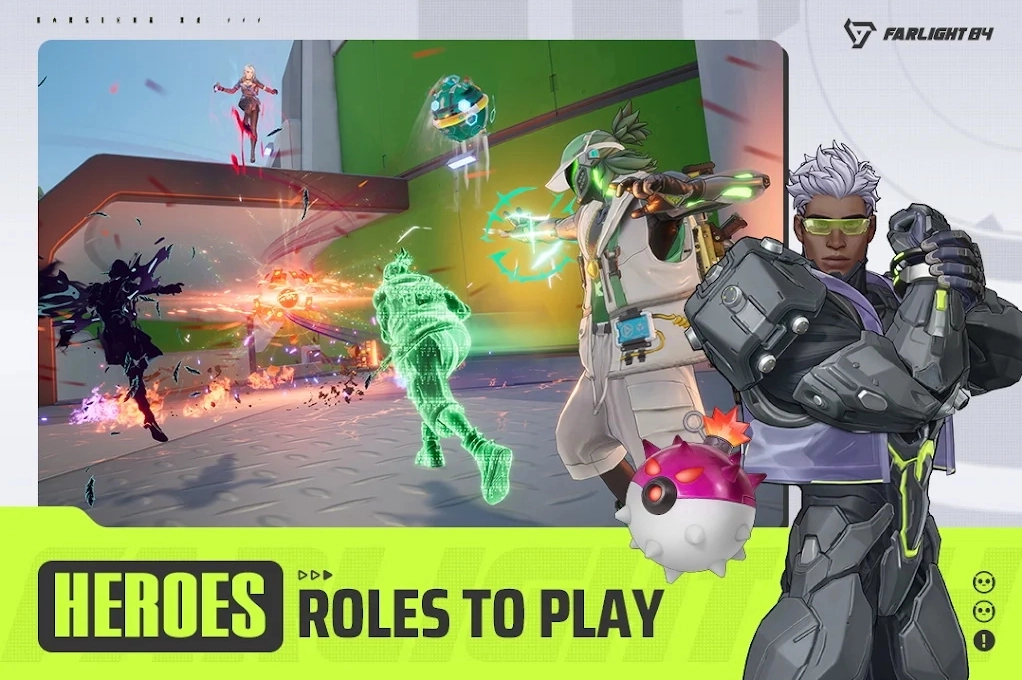 《Farlight84》设有四个不同的角色与数十位酷炫英雄。你可以挑选其一加入自己的小队,进而制定作战策略——即便瞄准技术欠佳也无需担心,尽情运用你的技能就好!