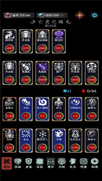 2、包含英雄属性、装备、技能、天赋等要素,从UI来看应该还设有养成系统,数值方面的深度表现出色。
