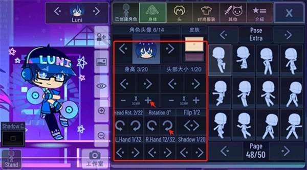 3、身体、头部等细节都能进行数值调整,这样就能创建出你喜欢的角色了。