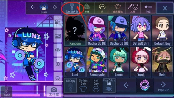2、创建角色后,可对身体、头部、衣服等进行选择