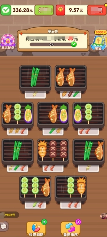 《烧烤达人》是一款以烤串为主题的休闲合成游戏,游戏里会出现各种各样的烧烤食材,像鱼、大葱、肉丸等。玩家需要把相同的烤串放到同一个烤架上,三个相同的烤串就能合成一份订单。游戏中还设有转盘抽奖功能,随时都能参与,奖品有道具、红包等。通过关卡后还能解锁图鉴,解锁图鉴也能领取相应奖励。