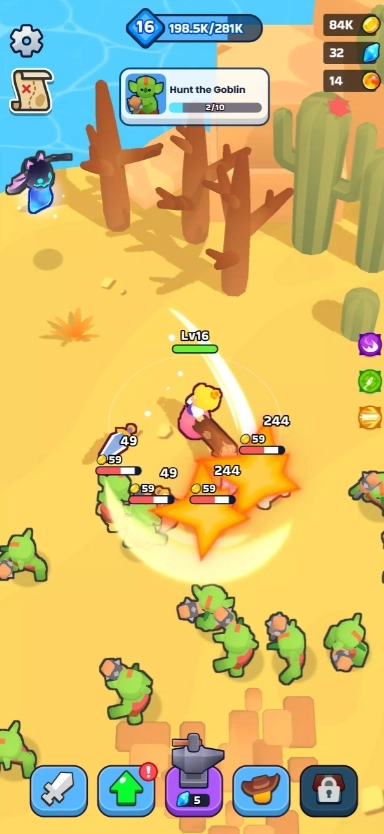 3、挑战巨型Boss:唯有顶尖的战士才有资格直面全屏震撼的巨型Boss。战胜它们,即可获取传奇级奖励,解锁更多全新挑战!