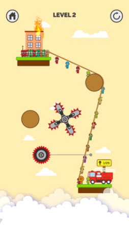 《逆天救援》是一款以绳索救援为核心玩法的游戏,玩家操作起来十分轻松。只要合理运用绳索,就能成功解救所有人。面对不同关卡的状况,你需要仔细观察路线,每一关都存在可探寻的正确解法。