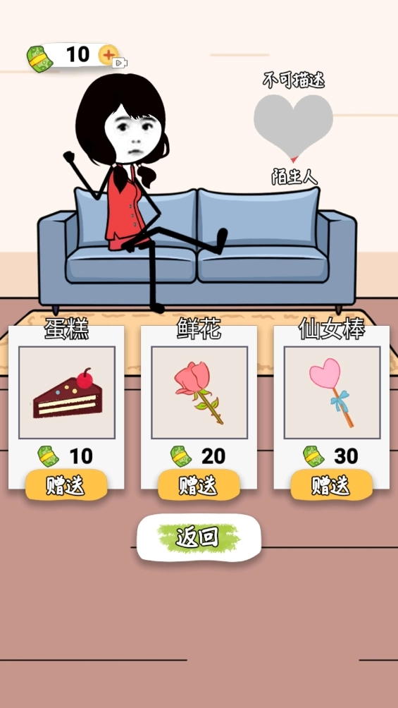 2、点击“关系”选项,你可以通过花费一定金额向小美赠送道具,以此提升双方的亲密度。