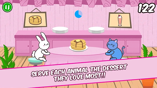 1、精准地把薄煎饼投喂给兔子、奶昔投喂给猫咪,这对玩家的反应速度与手眼协调能力有着一定的考验。