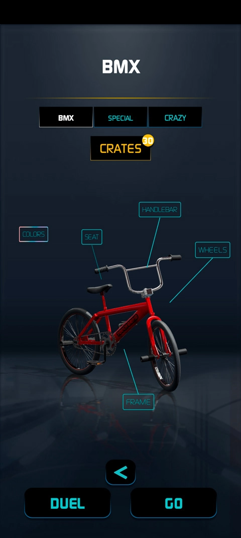1、设计并组装一辆完全由你定制的BMX越野车。你可以从多种车架、车把、车轮和车座中挑选,还能喷涂个性车漆,尽情展现个人魅力。