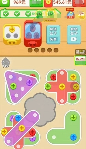 《五福临门》是一款以解螺丝为核心玩法的红包小游戏,整体采用清新简约的美术风格,无论是每一颗螺丝还是每一块盘子,都经过了精心设计,显得十分精致。玩家只需点击螺丝即可进行消除操作,完成关卡挑战后,就能赢取丰厚的红包奖励。无论是用来打发闲暇时光,还是锻炼大脑思维能力,这款游戏都能为你带来无尽的欢乐,堪称策略规划与趣味消除的完美结合。