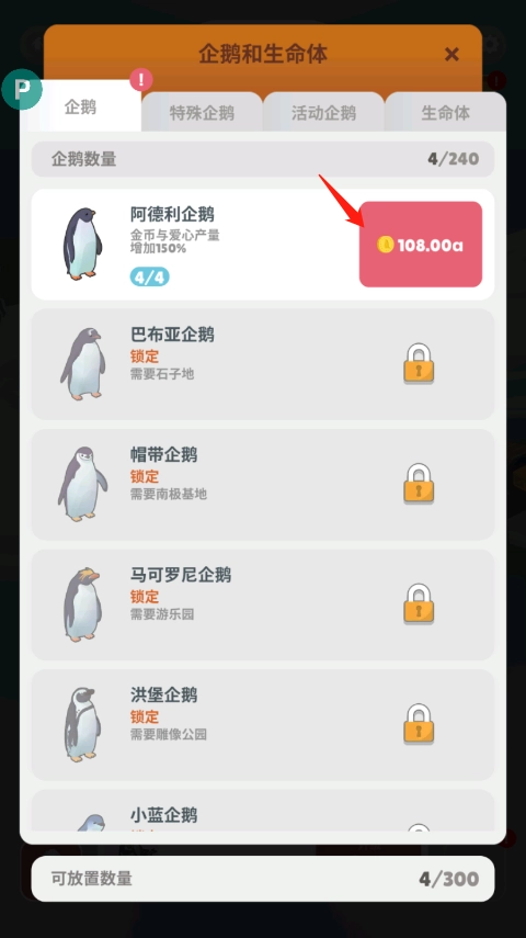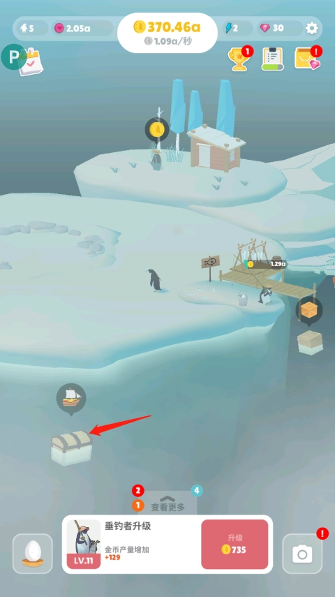 3、阿德利企鹅已创造完成,金币和爱心的产量提升150%。