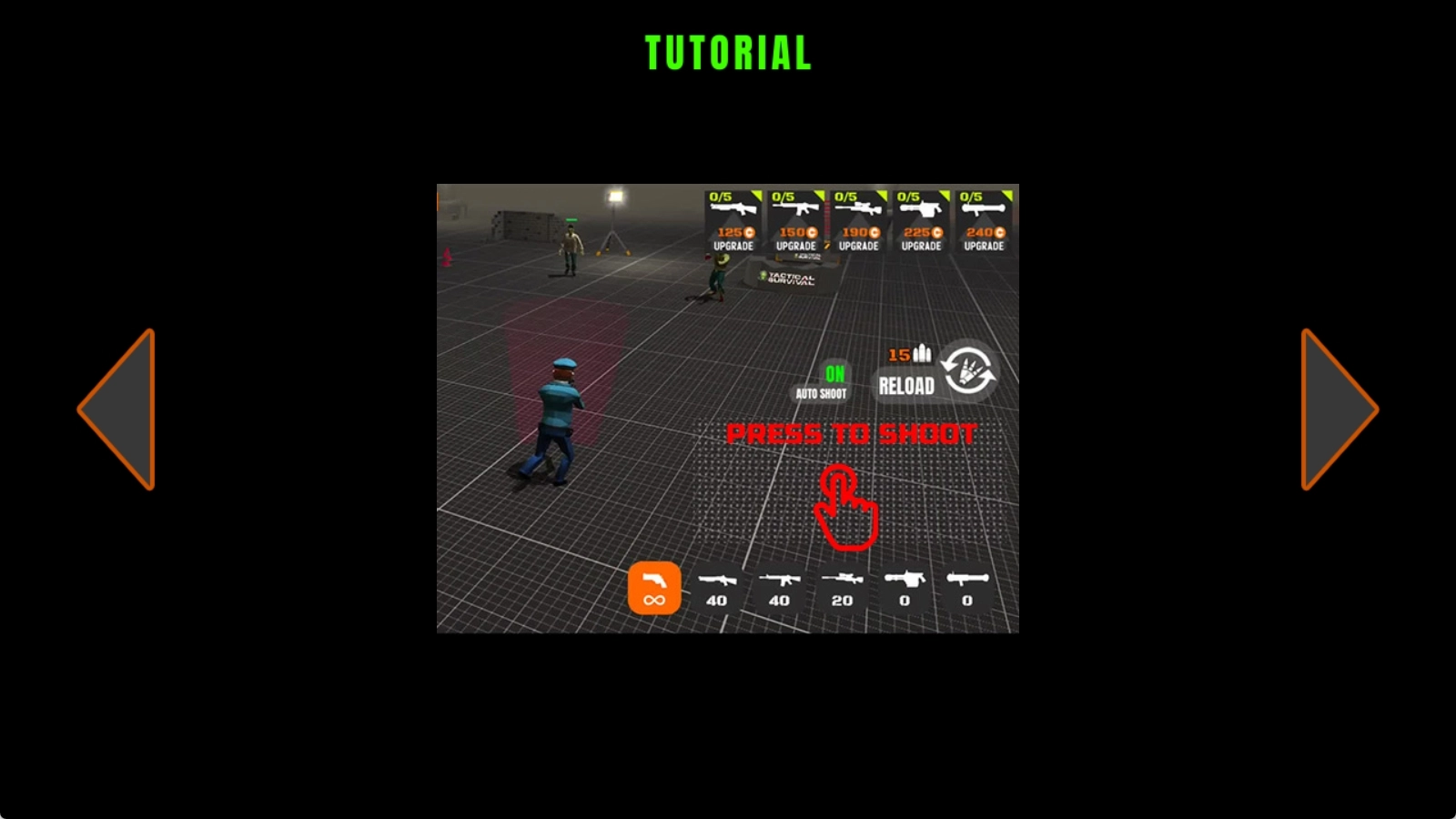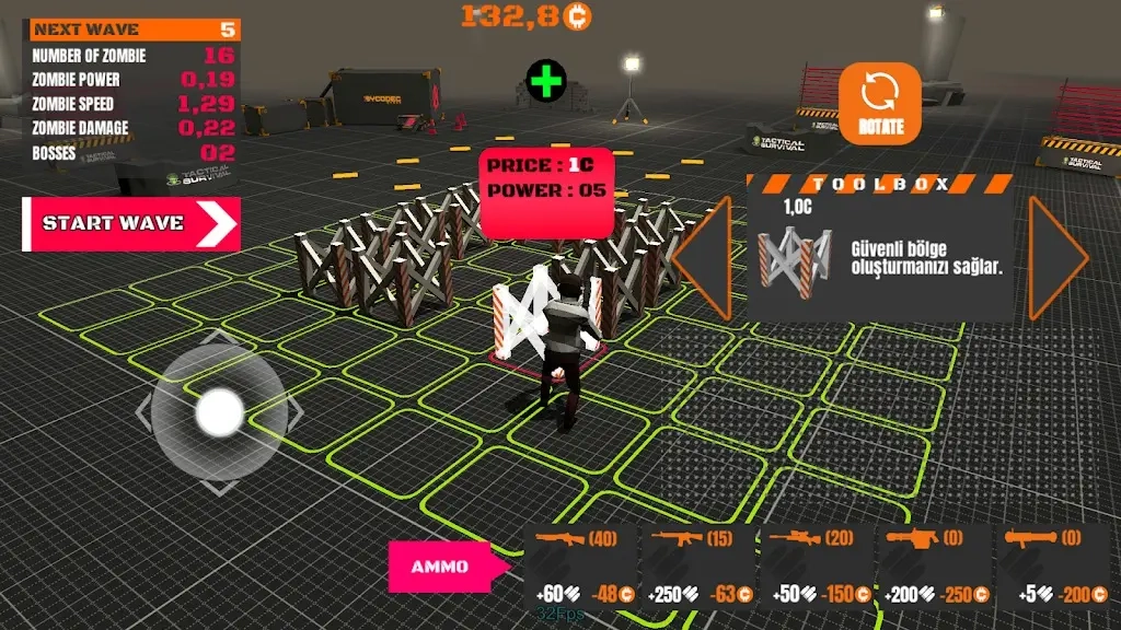 战术生存是一款十分有趣的策略生存游戏。在游戏里,你会遭遇僵尸一波接一波地侵袭你的领地。每一轮攻击结束后,你可以重建领地、为下一波攻势做准备——利用安全栅栏构建安全区域,扩充军备力量,争取拿到最高分数并在世界排行榜上展现自己。快来制定专属策略,在僵尸浪潮中尽可能长久地生存下去吧!
