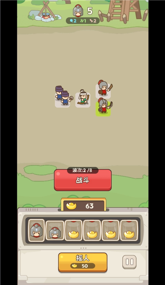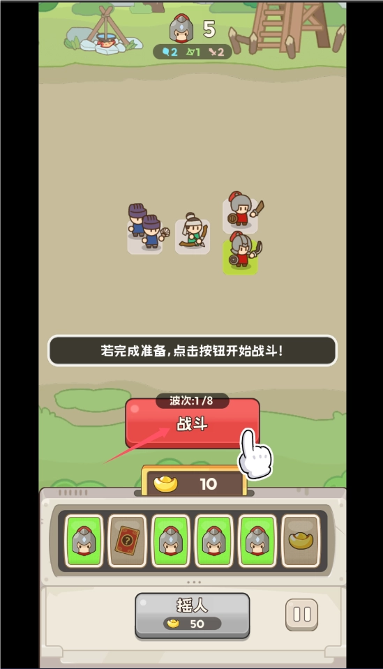 3、获得士兵后,点击战斗按钮开始战斗。