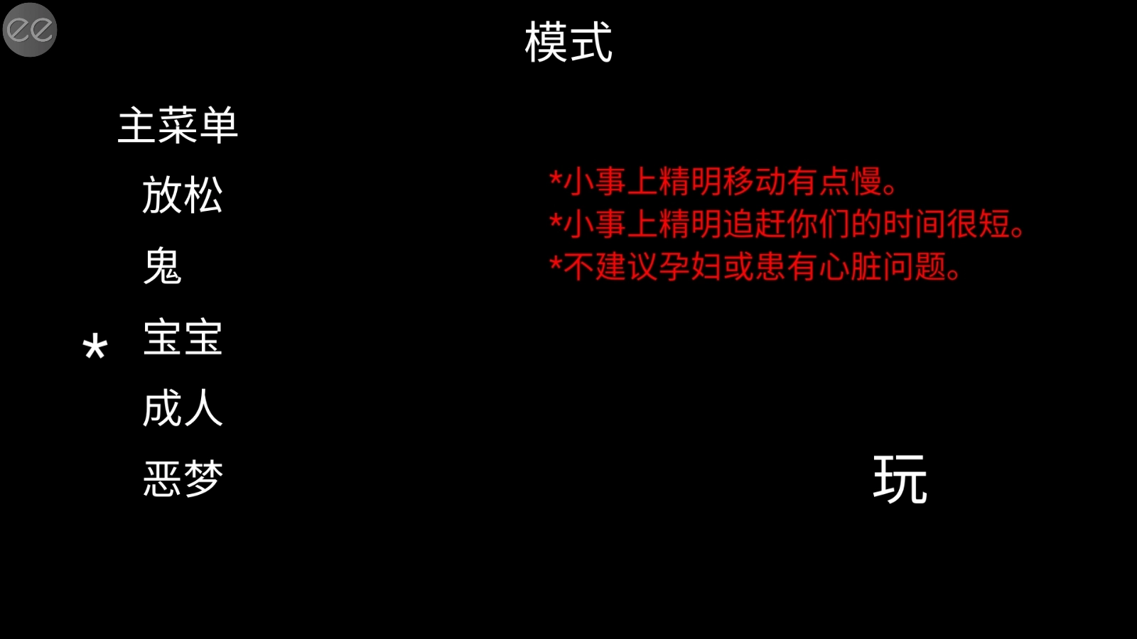 3、在游戏模式里可以选择难度,其中“宝宝”是最简单的一档,新手推荐选宝宝模式,选好后点击右下角的“玩”按钮就能开始。