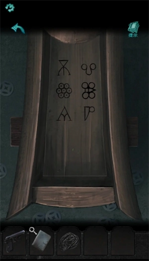 1.从桌上拿到《符纸》,将其贴在墙上的眼睛位置,获得《钳子》后,用钳子打开笔记本。依据桌上贡品的高低顺序开启石门:蜡烛排第四,人像排第三,苹果排第二,金锭排第一。