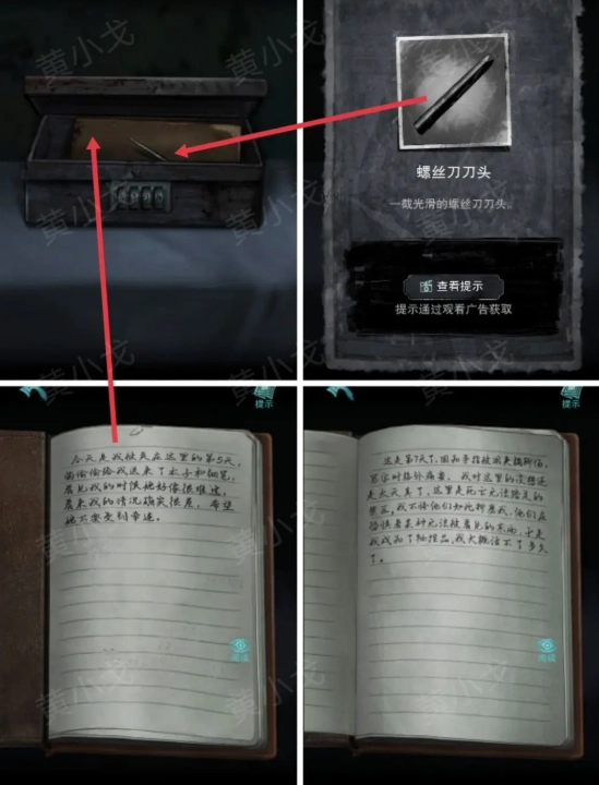 11.打开盒子,取得【螺丝刀刀头】,并查看日记本里的内容