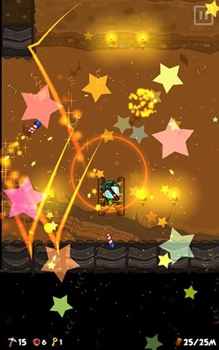 4、要是挖到炸药,它就能帮我们炸掉周围的土块;要是挖到电钻,它会向下挖掘,自动钻开地底的土块。