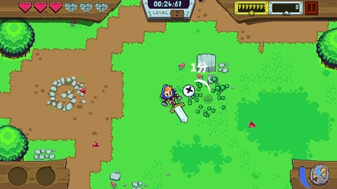 《眩晕骑士》是一款休闲向的角色扮演游戏,采用简洁的俯视角像素画风,带着红白机或GBA时代的复古韵味。心形的血量显示设计满是怀旧感,尽管画面略显质朴,但鲜亮明快的色彩搭配既让整体充满活力,又不会显得沉闷。活泼欢乐的音效与绚丽画面相互呼应,让游戏节奏轻快而富有乐趣。