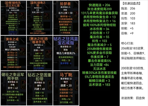 武器既可以通过DIY制作(前提是拥有一定的库存),也能利用暗金武器退化来制作符文之语;至于戒指、手镯、腰带和靴子,则需要根据你的施法速度来调整搭配。