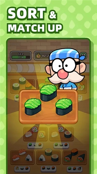 《寿司时间》是一款融合了分类与模拟经营元素的趣味游戏。在这里,你将化身为一位境遇不佳的商人,从经营一家小小的寿司店起步,逐步朝着事业巅峰迈进。你需要用心打理店铺,对各类寿司和小吃进行分类管理。通过持续装饰店铺、研发新食谱以及招募员工,不断拓展业务规模,力求让每位顾客都能满意而归。