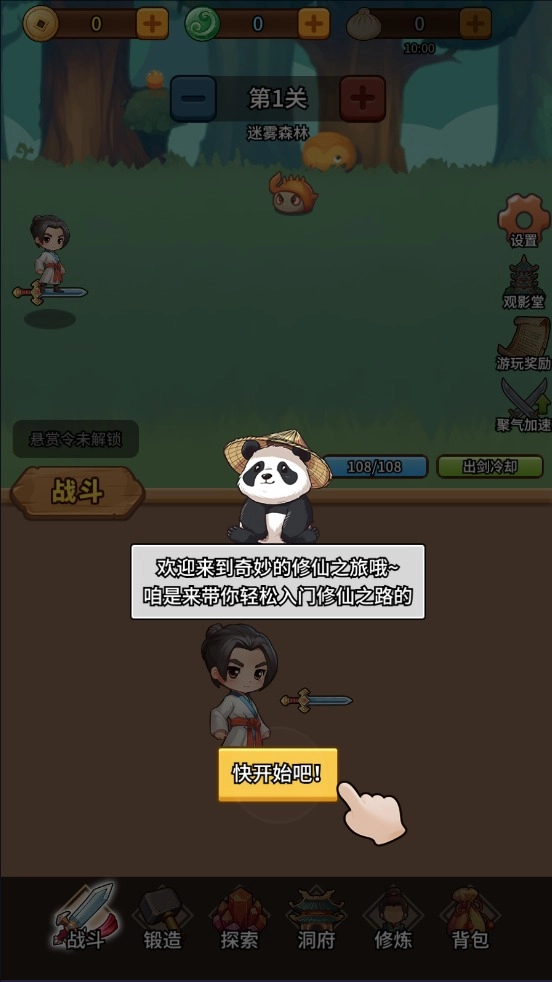 1、进入,开始轻松修仙之旅。
