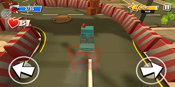 6、汽车会自动加速前进,玩家只需点击左右两侧的箭头来控制车辆方向。