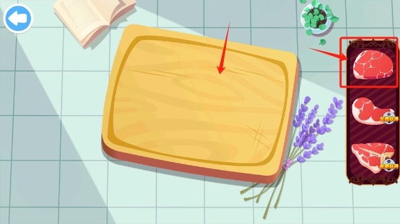 9、我们把肉拉到菜板上。