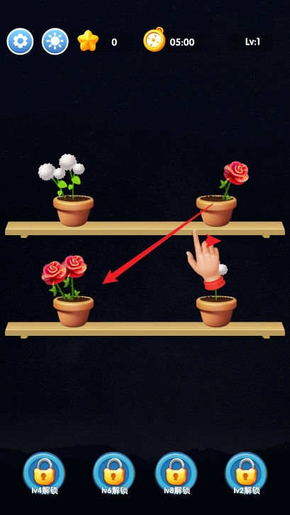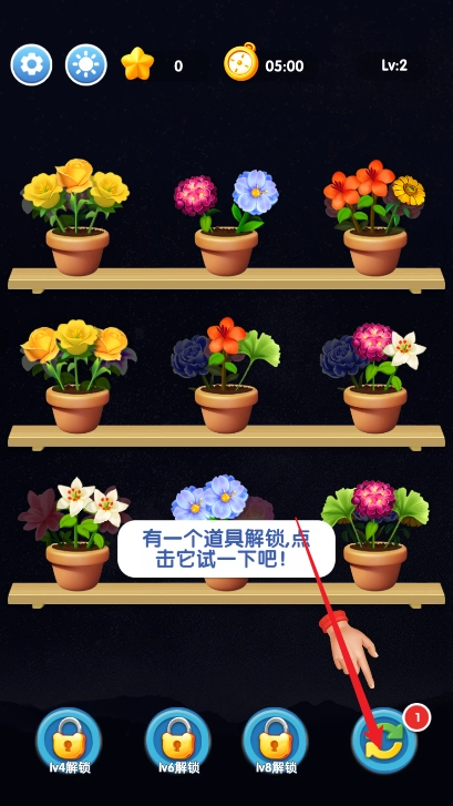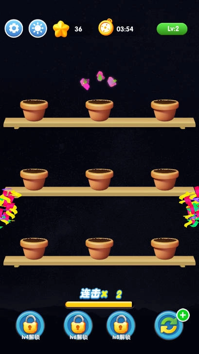 1、在每一个关卡中,玩家都需要思考怎样合理规划花朵的存放位置,并且想办法实现消除效果的最大化。