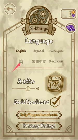 9、点击右上角的齿轮图标,能够完成语言切换以及音频音量的设置。