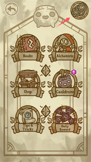 8、点击左上角的三条杠图标,里面包含书籍、炼金术士、商店、坩埚、提示诀窍等选项,还能领取每日奖励。
