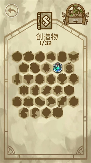 7、点击左上方的卷宗图标,就能查看已炼制完成的创造物以及合成记录。